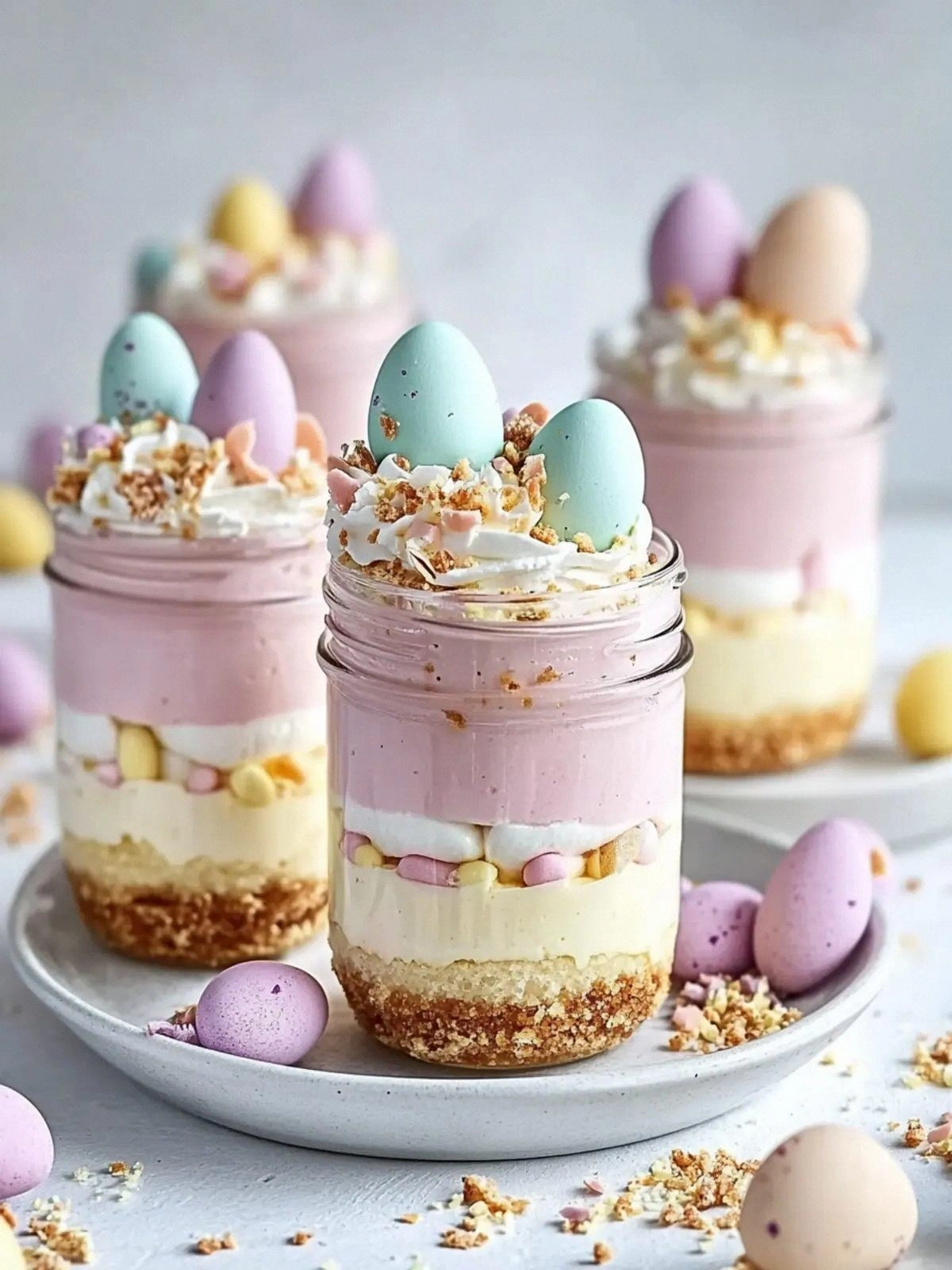 Top each jar with a swirl of whipped cream, a handful of candy eggs, and a sprinkle of rainbow sprinkles. The visual contrast and the burst of flavors elevate the dessert from simple to spectacular. The final flourish is what makes it a crowd‑pleaser at any gathering.