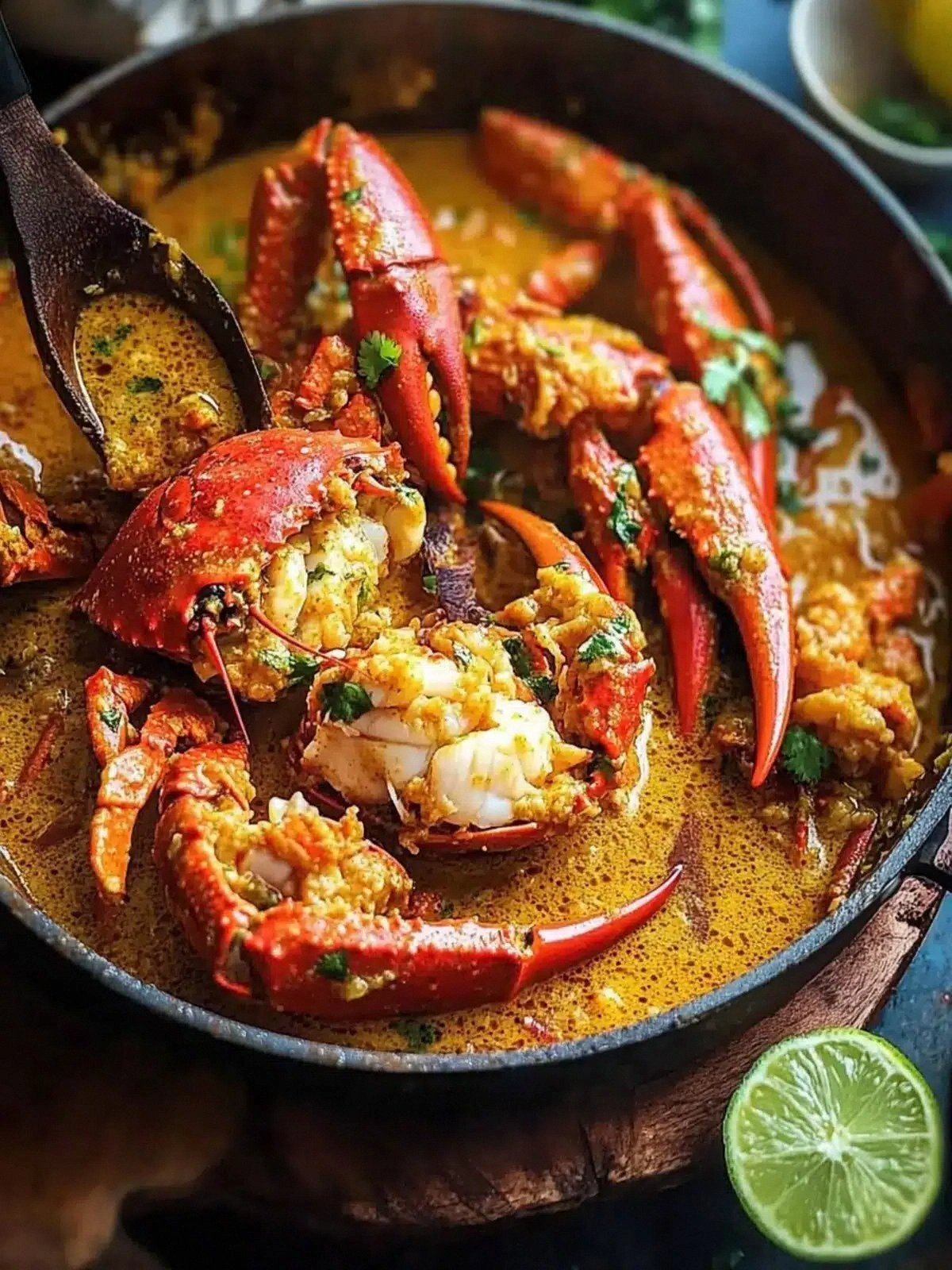 Imagine the sizzle of onions and garlic hitting hot oil, the aroma of ginger and curry powder blooming like a sunrise over the bay, and the gentle hiss of coconut milk mingling with broth to create a velvety base. The visual is a golden‑brown sauce that coats the crab legs like a glossy coat of armor, while the sound of the pot bubbling is music to a home‑cooking enthusiast. The texture is a delicate balance: tender crab meat, crisp edges that crackle like thin ice, and a sauce that clings to everything, offering both richness and a bright citrus lift from lime juice.