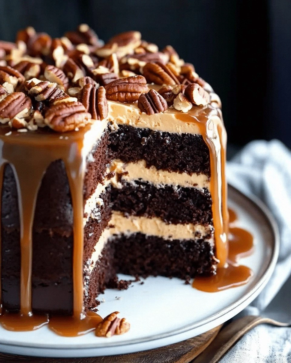 Fast forward to today, and this Turtle Chocolate Layer Cake is a symphony of textures and flavors that will have you dancing with delight. Imagine biting into a moist chocolate sponge that gives way to a silky ganache, only to be surprised by a crunchy caramelized pecan layer that adds a buttery crunch. The moment the first forkful hits your palate, you’ll taste the rich chocolate, the subtle saltiness, and the caramel’s sweet kiss—like a velvet blanket wrapped around a toasted marshmallow. I dare you to taste this and not go back for seconds, because once you’ve had it, you’ll think all other cakes are just… well, cakes.
